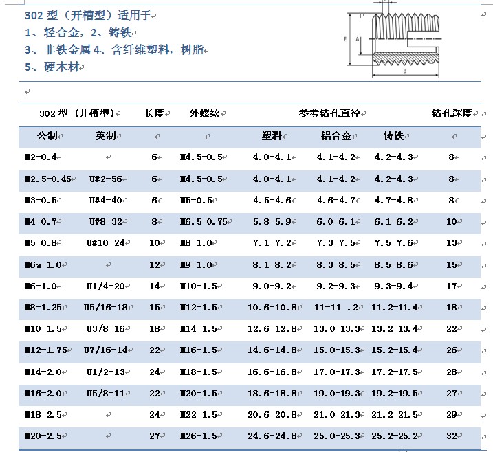 (8)同样规格的自攻螺纹衬套,可适用于多种不同的材质,符合经济效益。